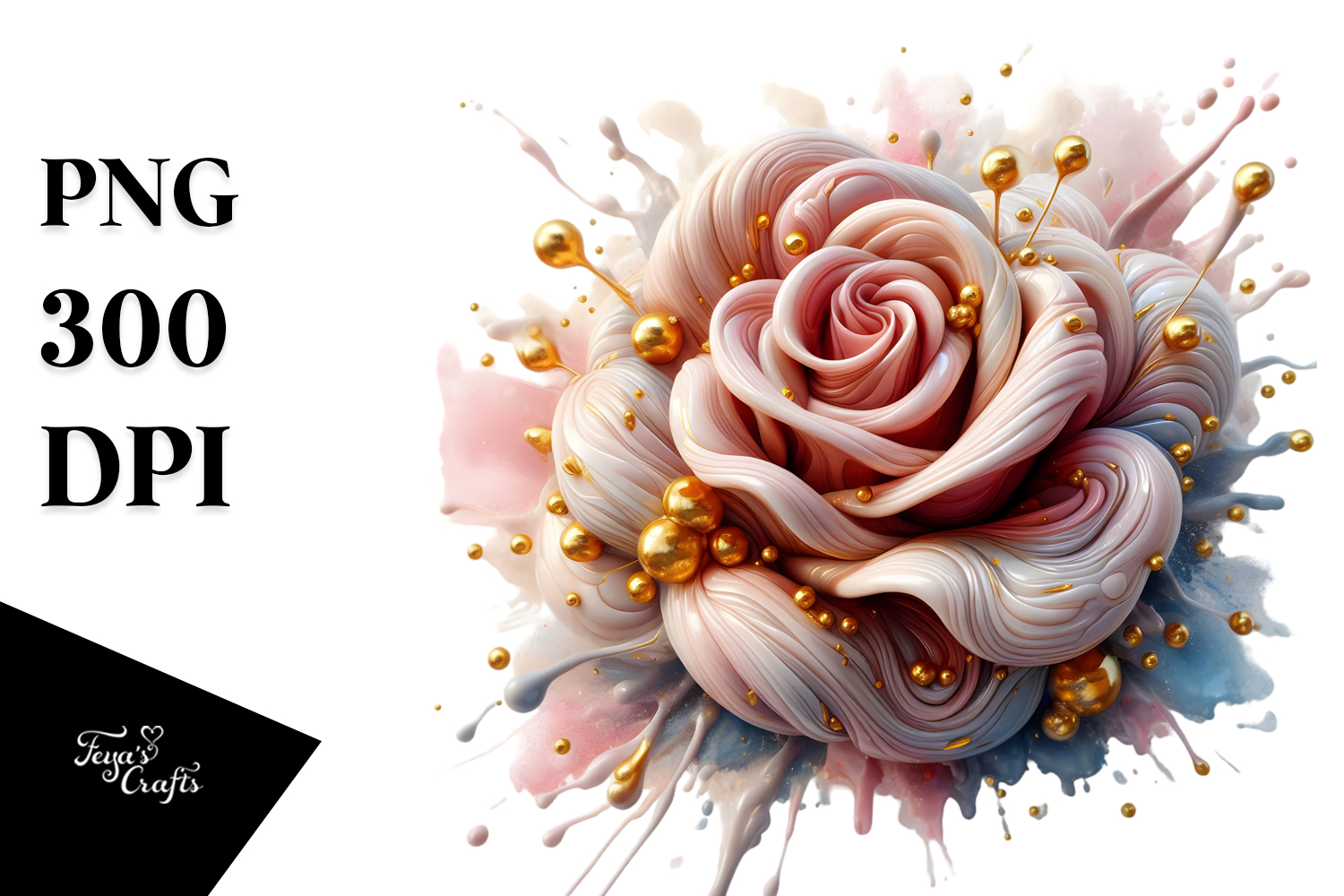 Abstract Glossy Rose with Golden Inserts PNG example image 1
