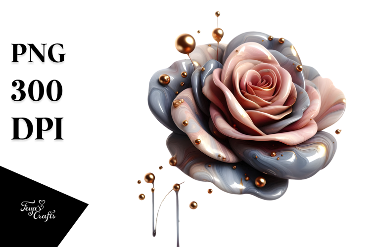 Abstract Glossy Rose with Golden Inserts PNG example image 1
