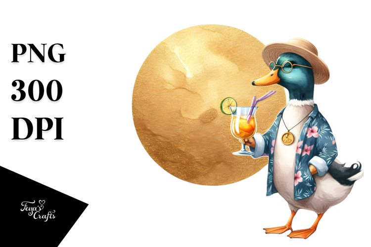 Hipster Colorful Duck Cocktail Drinking Beachwear Goldfoil Cloudofdust