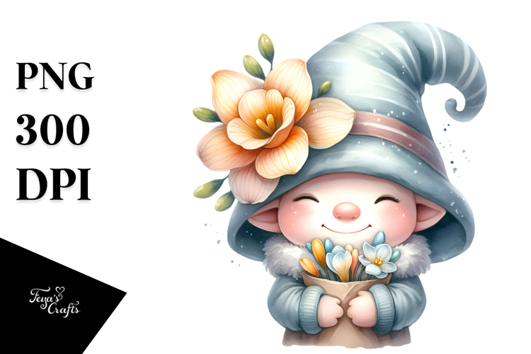 Cute Gnome with Azalea Flower on Moon PNG example image 1