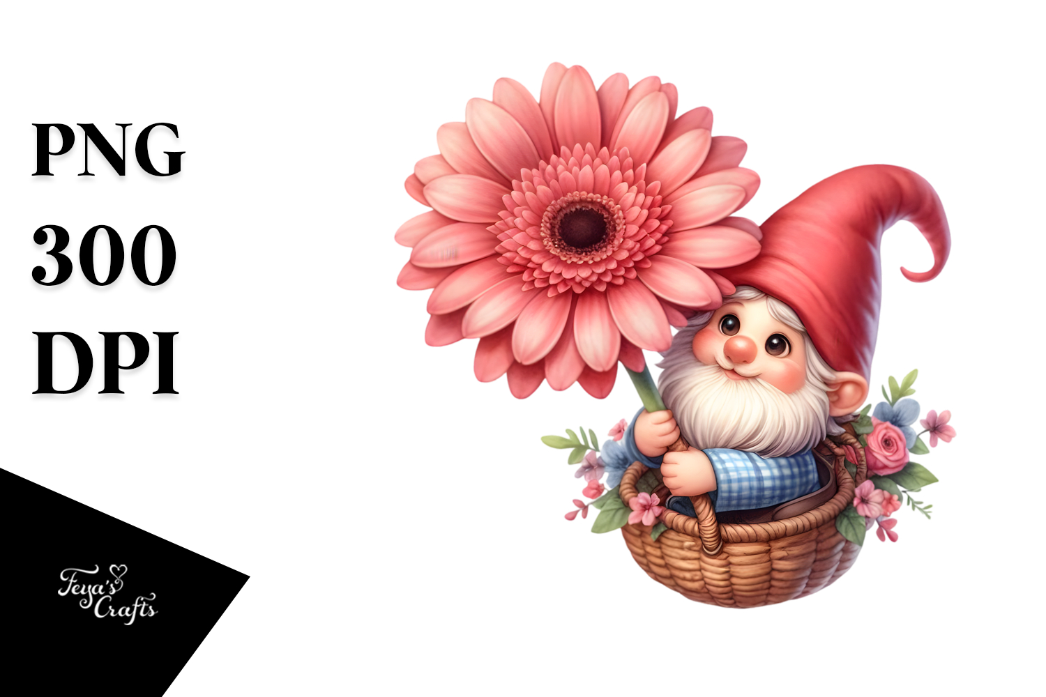 Watercolor Cute Png Air Shoulder Floating Gerbera Sublimation Gnome