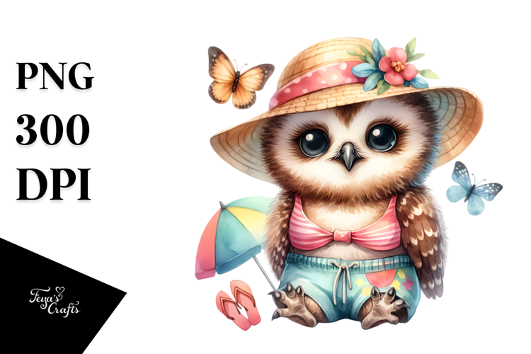 Sticker Summer Cute Baby Flower Owl Png Sublimation Wearingbeachwear