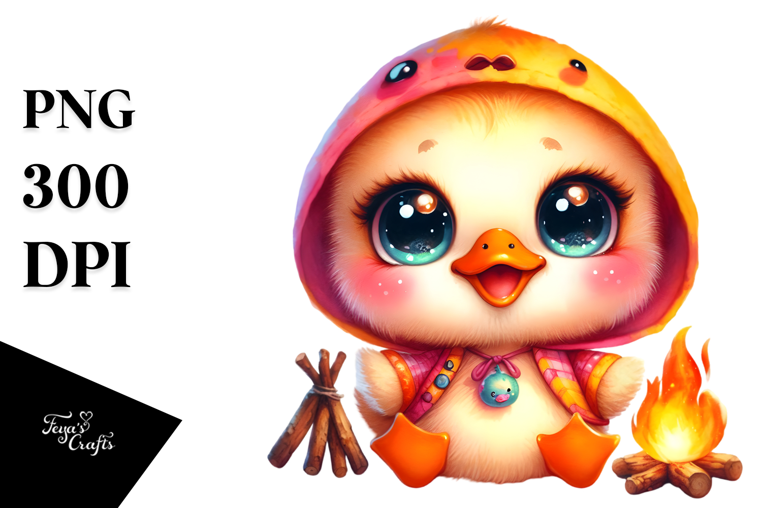 Similar Design Products to Vibrant Watercolor Baby Duck with Campfire, PNG