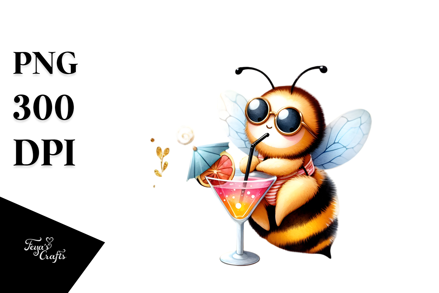 Cute Bee in Beachwear with Cocktail PNG example image 1