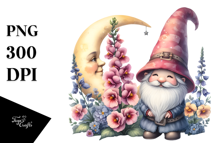 Similar Design Products to Cute Gnome with Snapdragon on the Moon, Colorful PNG