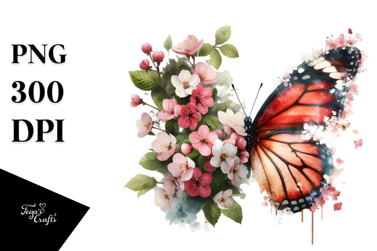 Similar Design Products to Grungy Butterfly with Spring Flowers, Colorful PNG