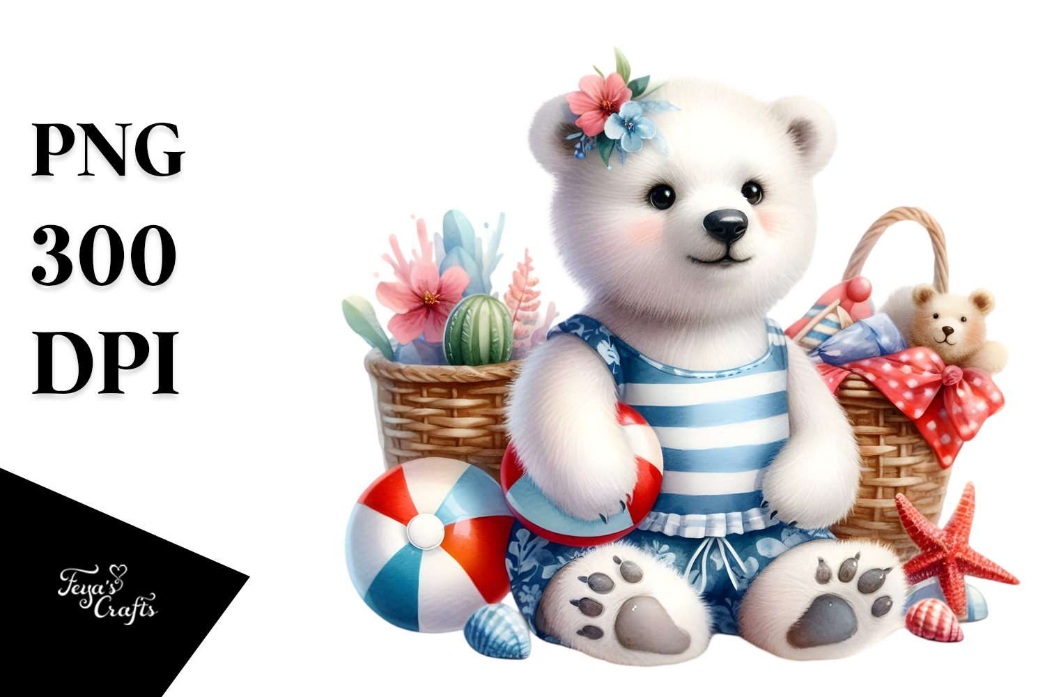 Baby Polar Bear in Beachwear, Colorful PNG example image 1