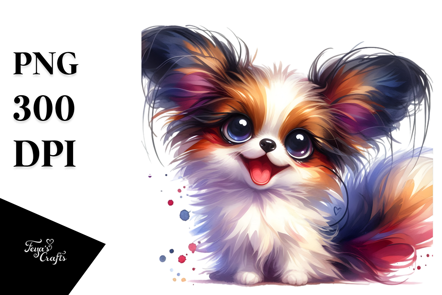 Cartoon Watercolor Cute Happy Pet Papillon Whitebackground Bigeyes Crazyfur