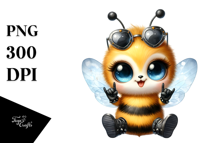 Cute Baby Bee with Rocker Look, High-Res PNG example image 1