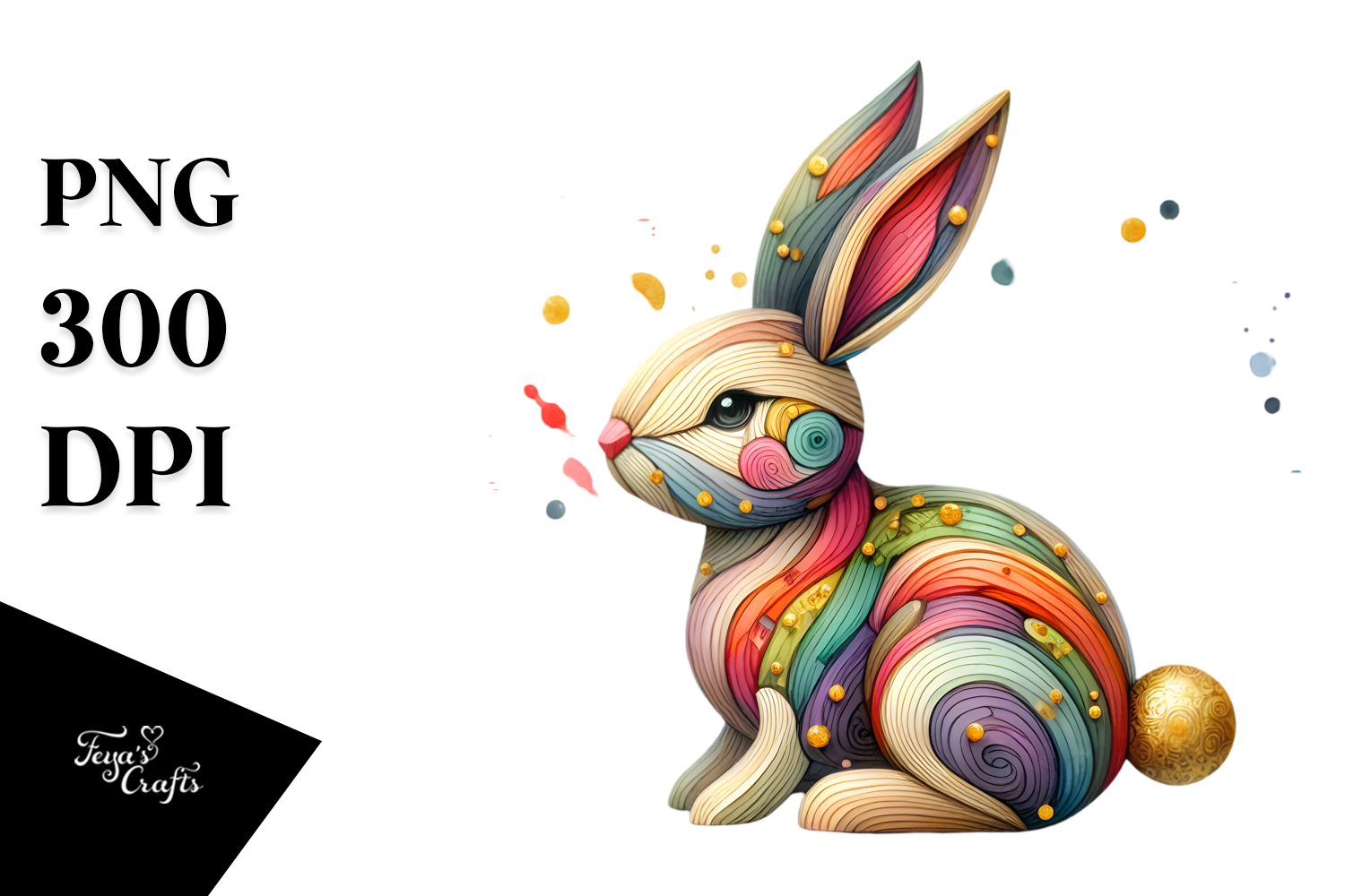 Colorful Bunny Made of on Splashy Background PNG example image 1