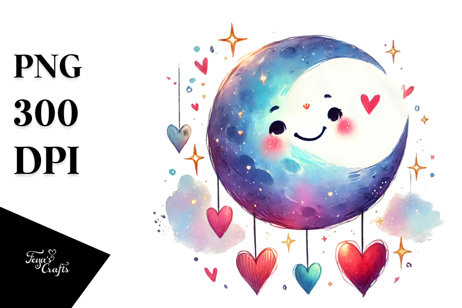Sticker Summer Hearts Flower Png Moon Smiling Sublimation Scribbled