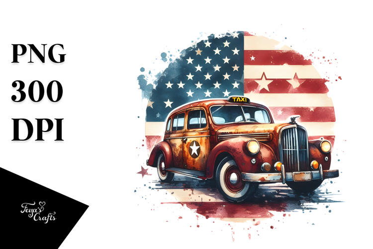 Vintage Rusted Taxi Stars USA Flag Clipart example image 1