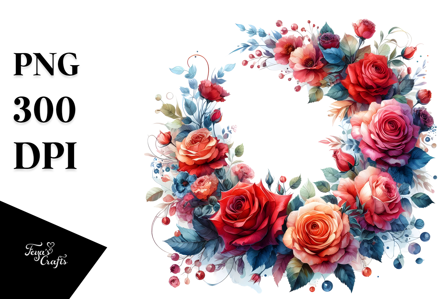 Watercolor Sticker Summer Flower Abstract Png Sublimation Horizontalframe Redroses