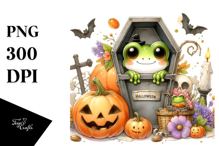 Image Funny Watercolor Halloween Cute Sublimation Whitebackground Babyfrog