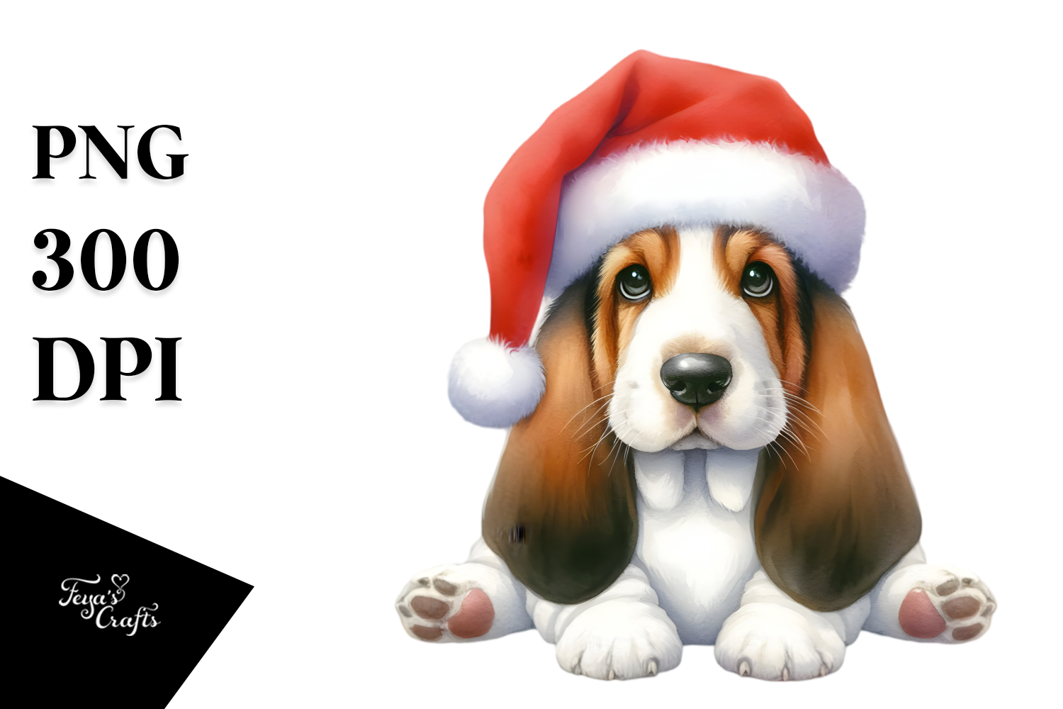 Watercolor Christmas Cat Decorations Sublimation Whitebackground Santahat Bassethound Simplescene