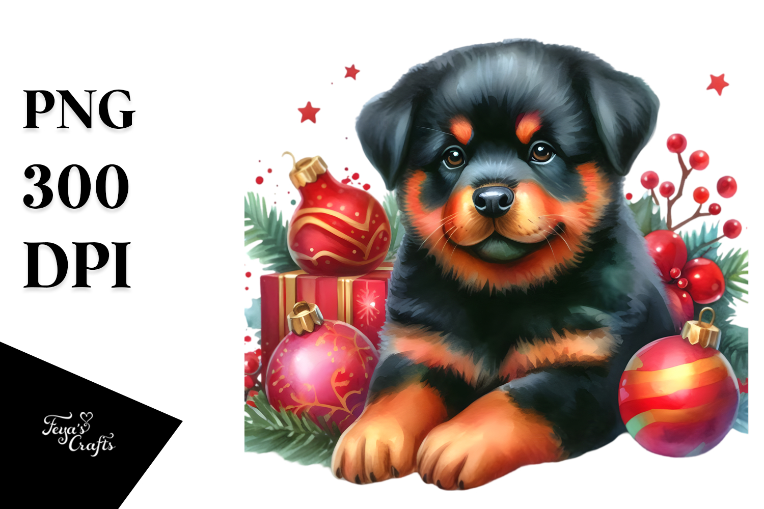 Cute Rottweiler with Christmas Decor, High-Res PNG