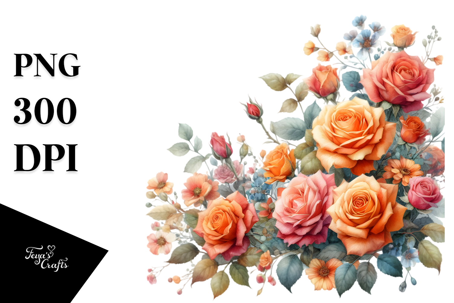 Similar Design Products to Colorful Floral with Small Orange Roses, High-Res PNG