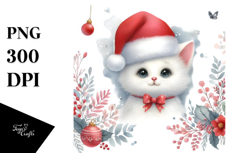 Similar Design Products to Vibrant Cat with Santa Hat, High-Res PNG