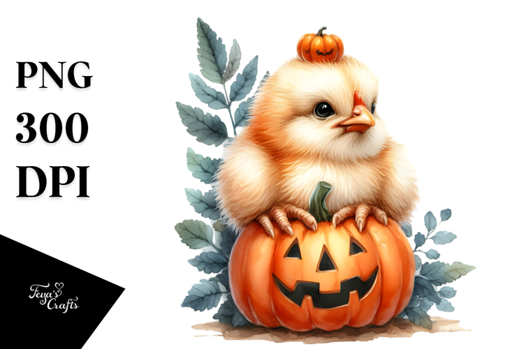 Watercolor Whitebackground Halloweenpumpkin Cutebabychicken Elementsnottouchingcanvasedges Highdetails