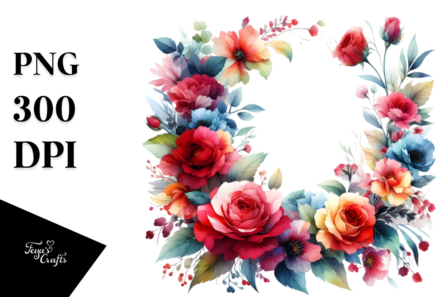 Similar Design Products to a Colorful Red Roses Floral Frame PNG