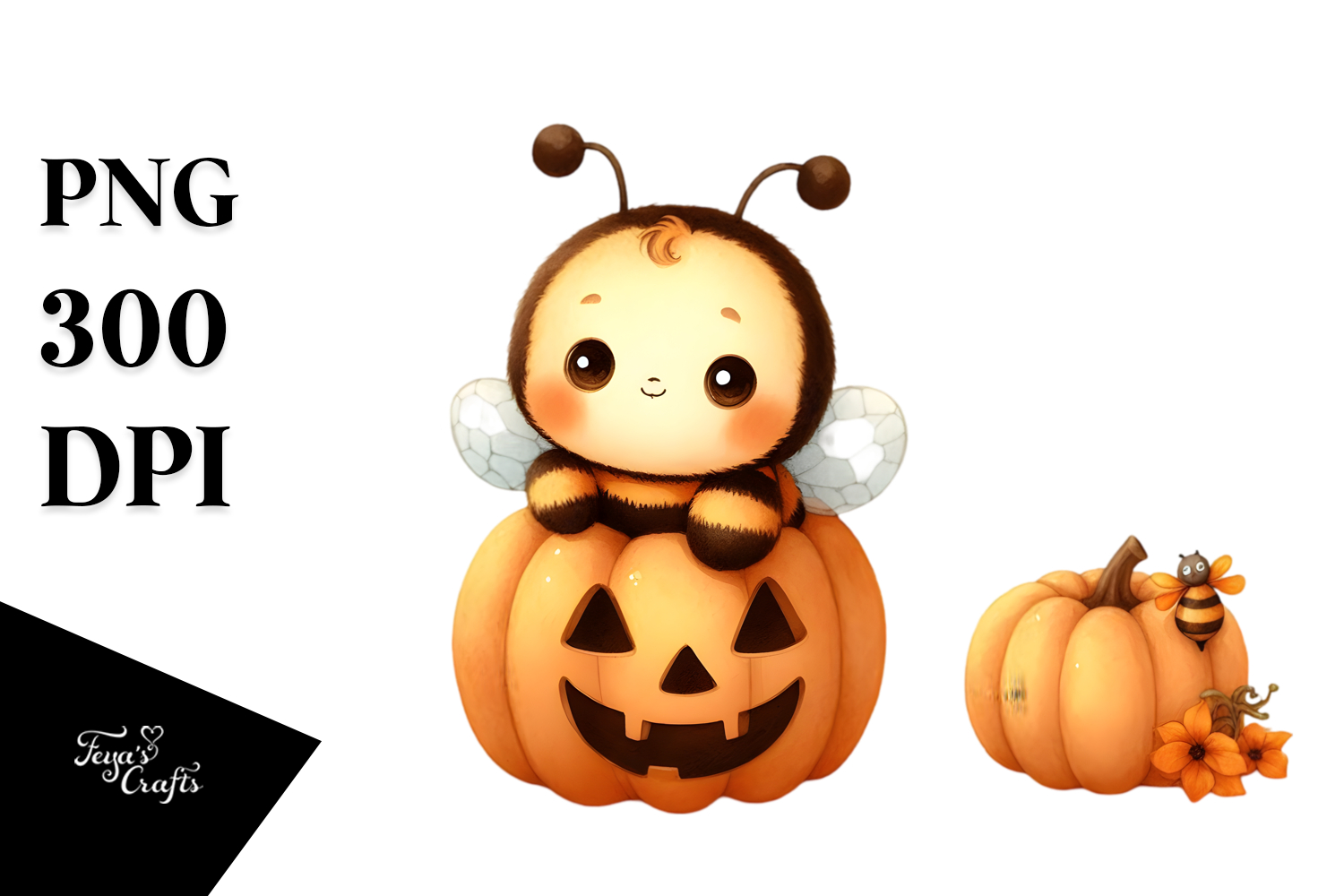 Similar Design Products to Cute Baby Bee in Halloween Pumpkin PNG