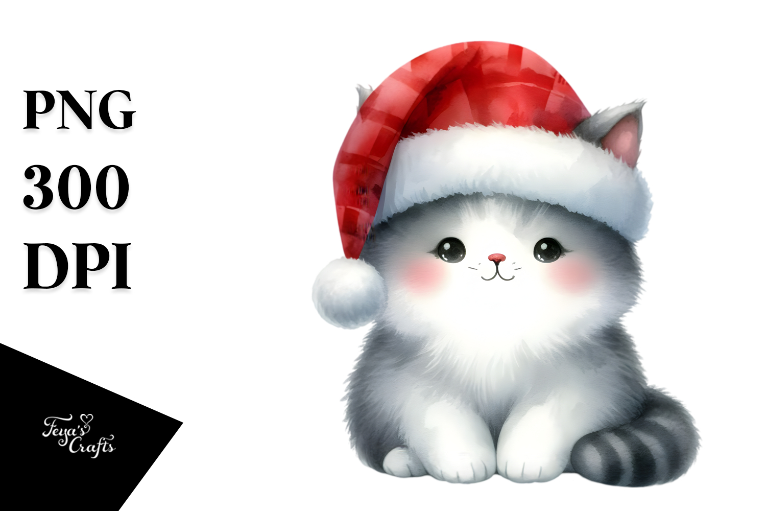 Watercolor Cat with Christmas Decorations PNG example image 1