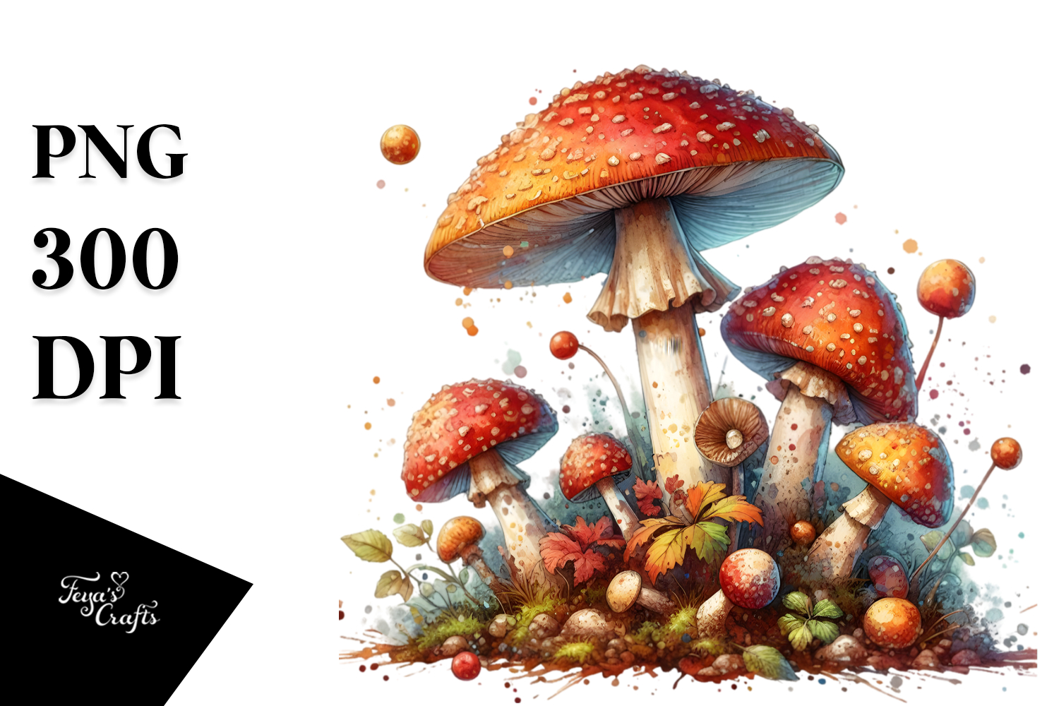 Wooden Detailed Vibrant Mushroom Pastel Whitebackground Watercolorsplash