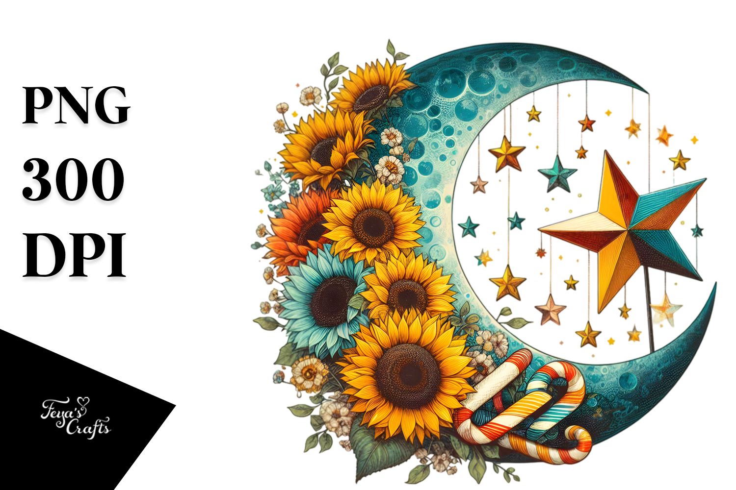 Stars Halfmoon Sunflowers Vintagepostcard Postcardstyle