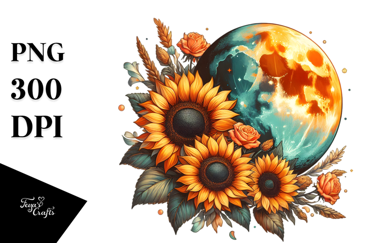 Similar Design Products to Vintage Postcard Half Moon with Sunflowers PNG