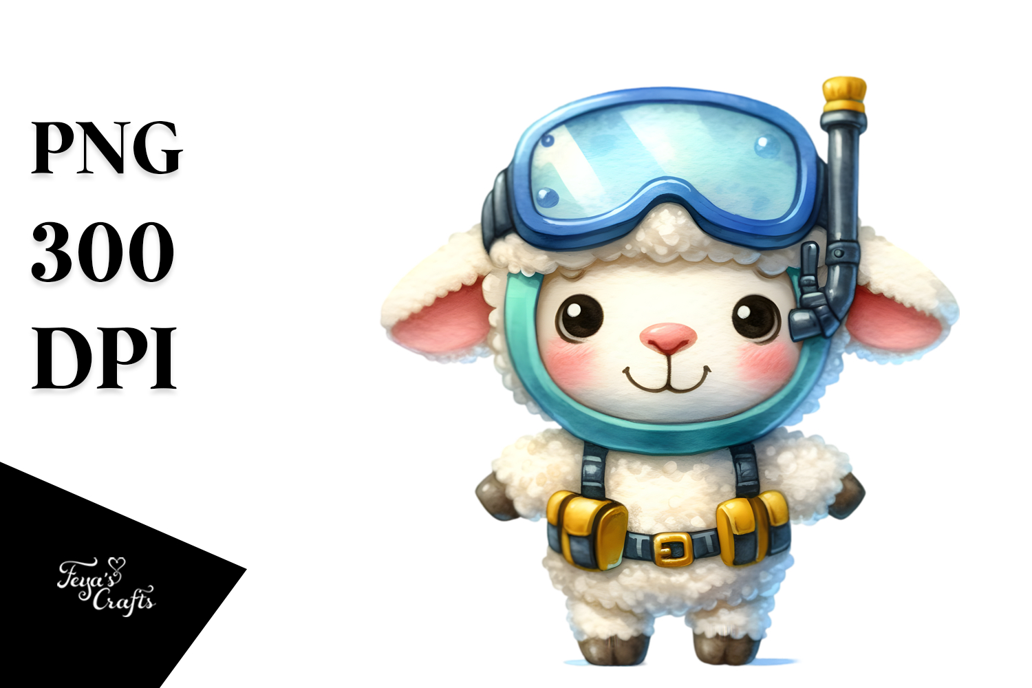 Funny Cute Lamb with Scuba Helmet PNG example image 1