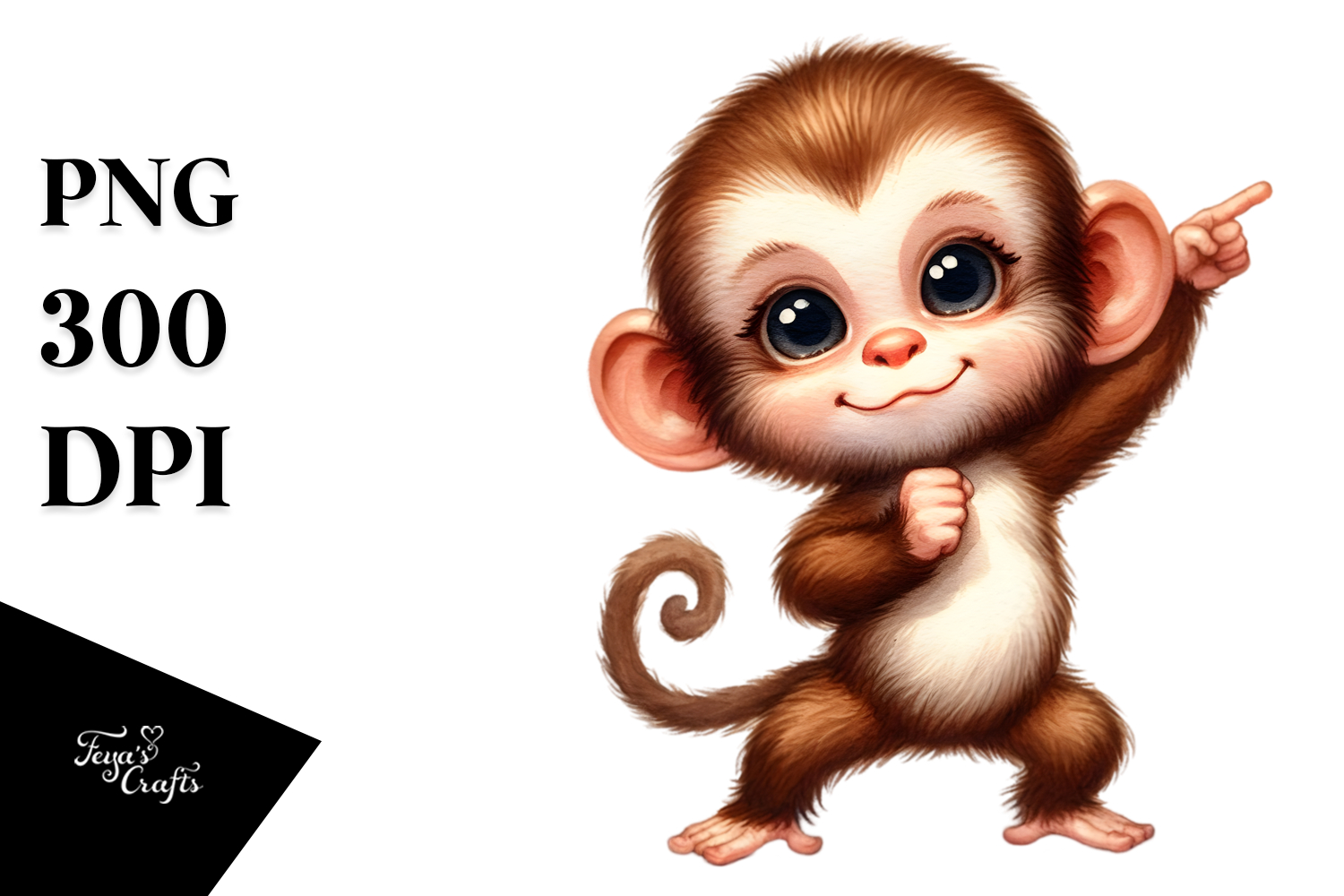 Funny Watercolor Sticker Summer Baby Flower Png Monkey Sublimation