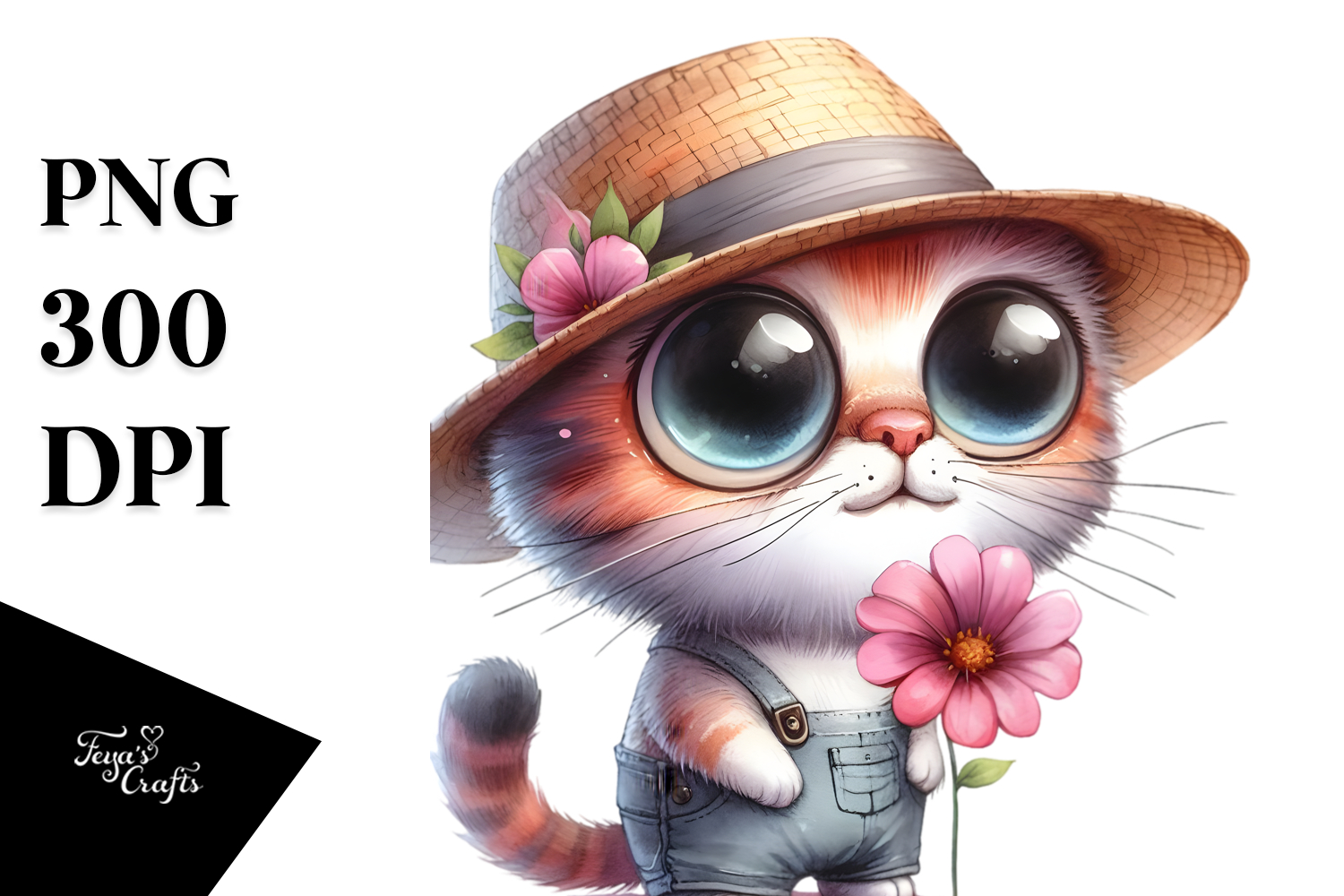 Watercolor Spring Cat Standing Expressive Confused Bigeyes Bigteeth Hatbandana