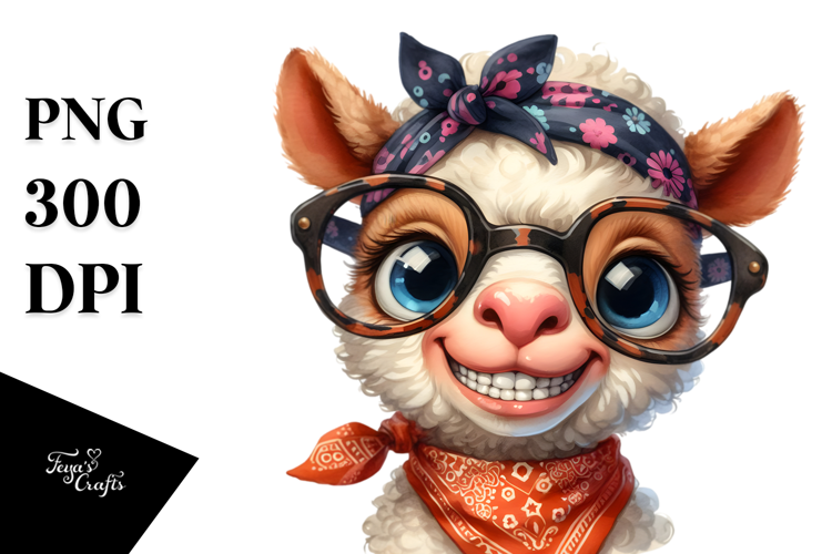 Funny Watercolor Smile Bandana Glasses Whitebackground Bigeyes Babyhorselamb