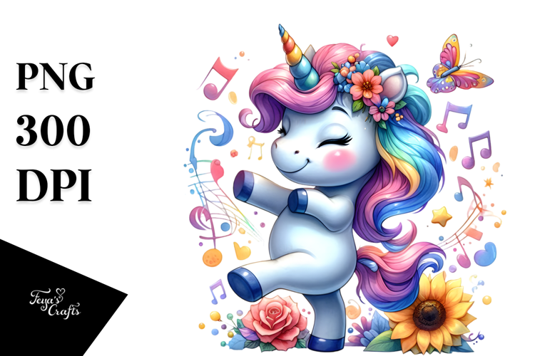 Funny Dancing Unicorn, Cute PNG example image 1