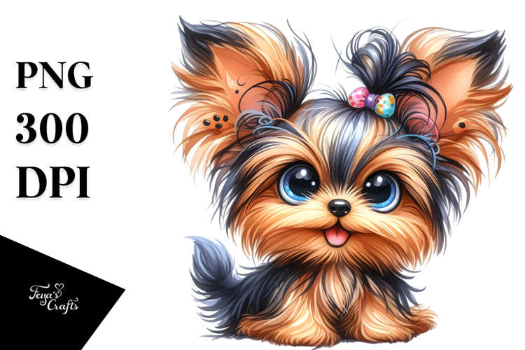 Happy Baby Yorkshire Terrier Cartoon PNG example image 1