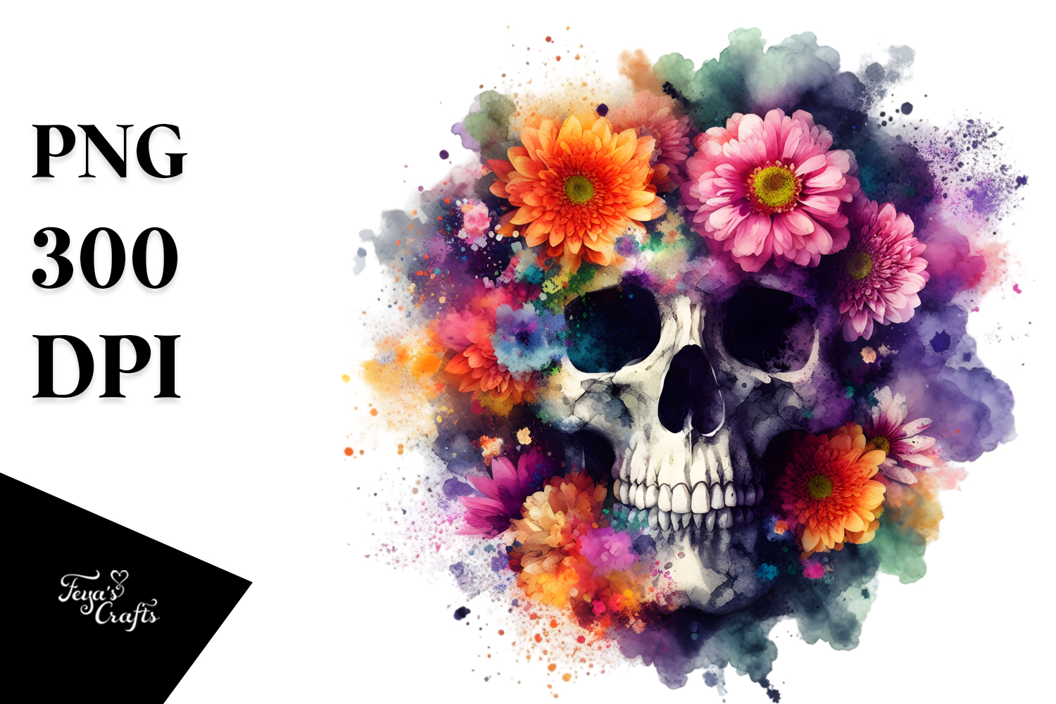 Sticker Summer Painting Skull Colorful Flower Png Grungy Sublimation