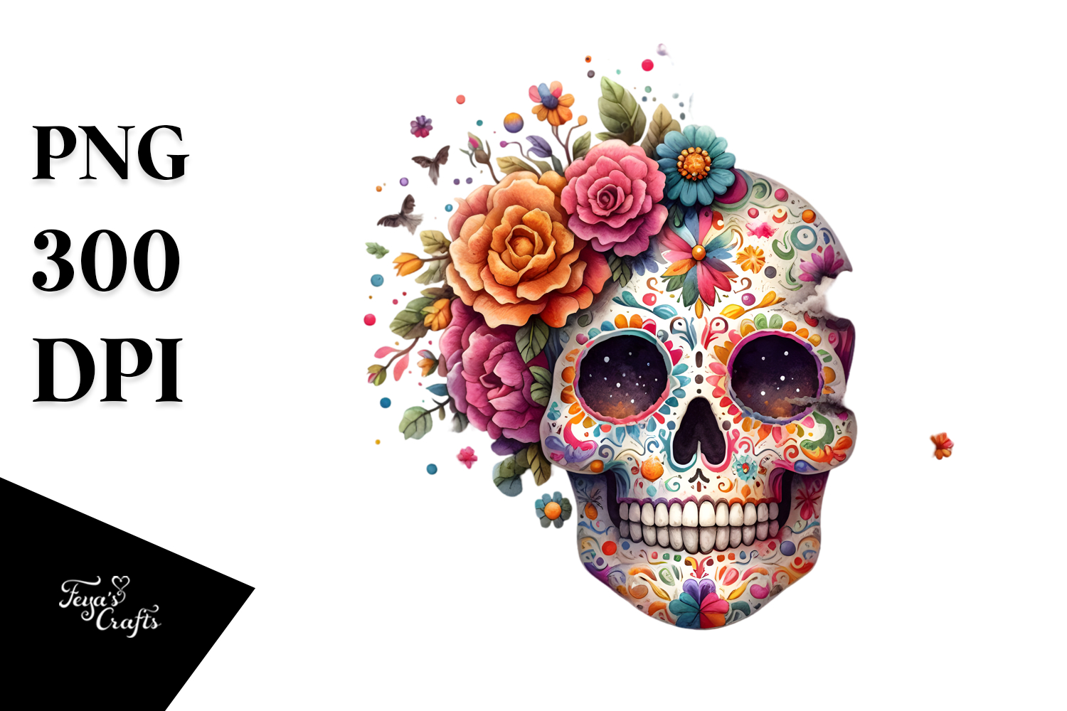 Sticker Summer Skull Colorful Flower Splashes Png Sublimation Cloudofdust