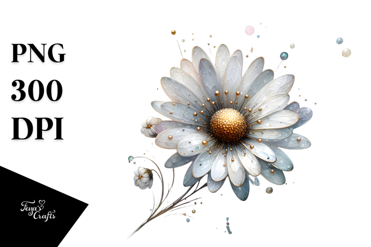 Watercolor Elegant Floral Flower Splash White Glass Metallic Daisy