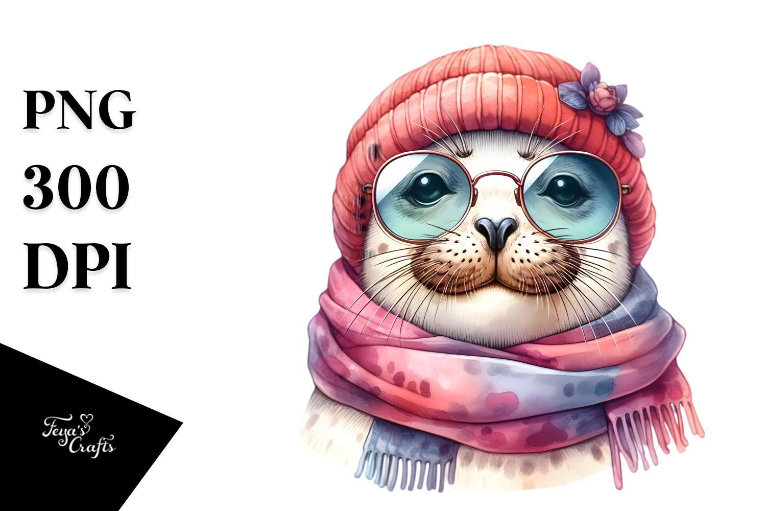 Funny Cute Seal Smiling Wearing a Scarf on the Head example image 1
