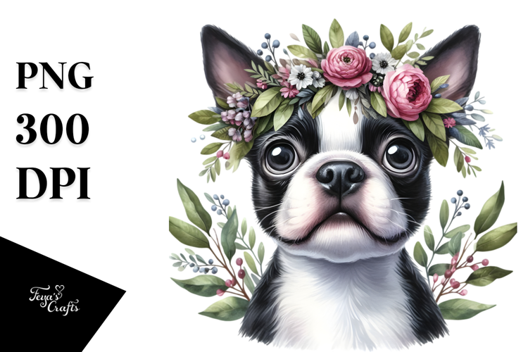 Elements Cute Canvas Clipart Wreath Sublimation Bigeyes Bostonterrier Nottouching