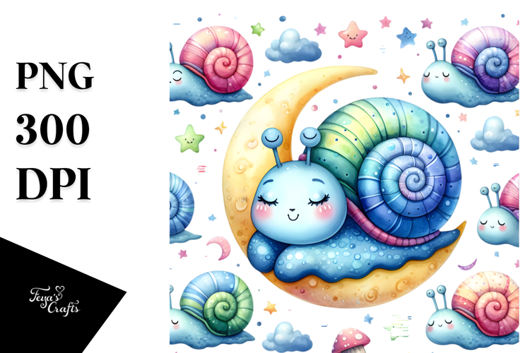 Colorful Baby Snail Sleeping on Moon | Sublimation Clipart example image 1