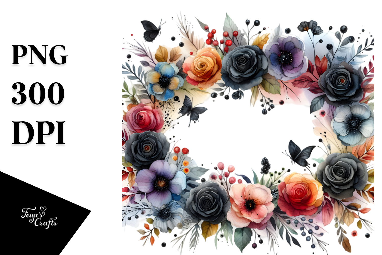 Similar Design Products to Colorful Horizontal Frame Black Roses | Clipart