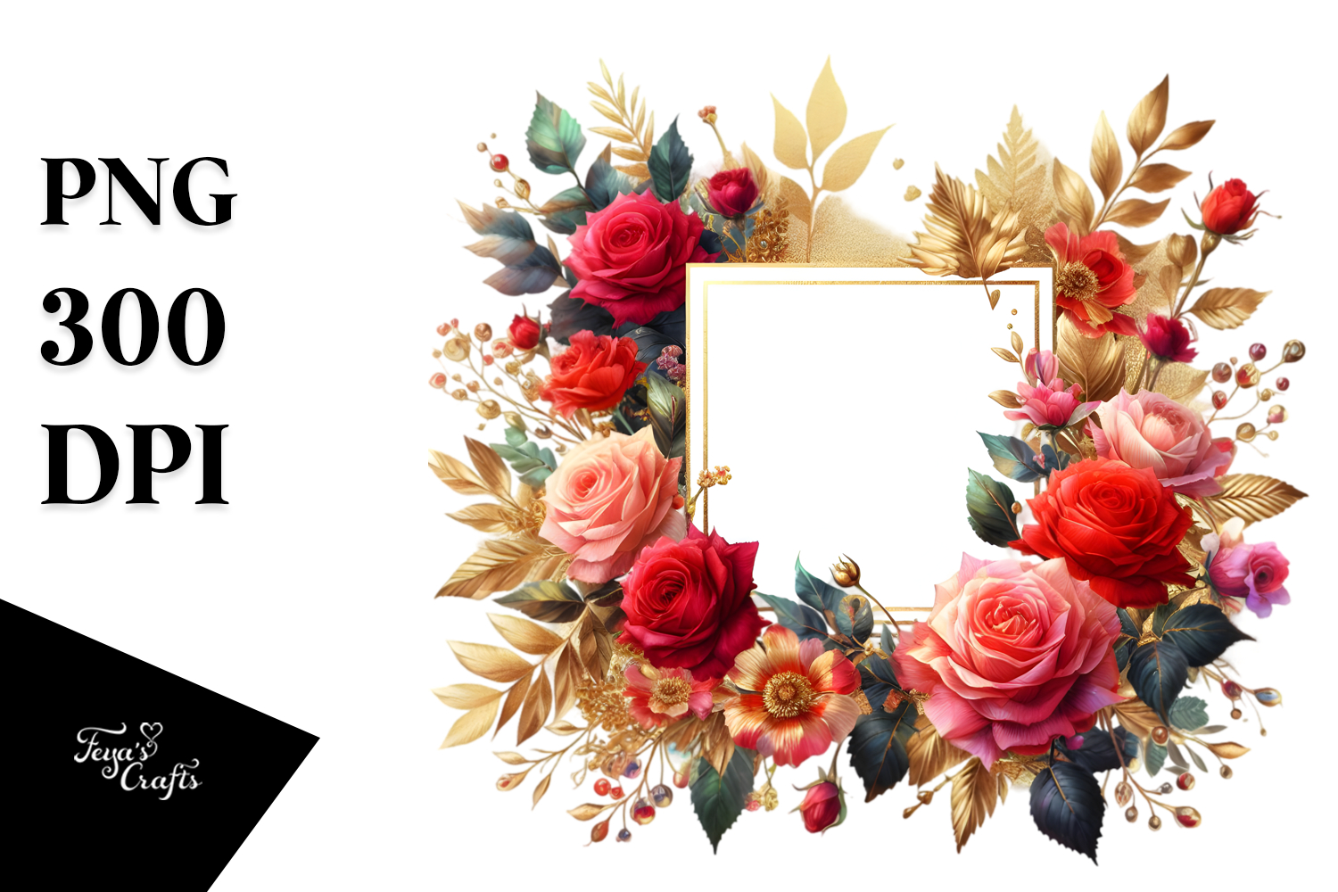 Sticker Summer Flower Abstract Png Sublimation Goldfoil Horizontalframe Redroses
