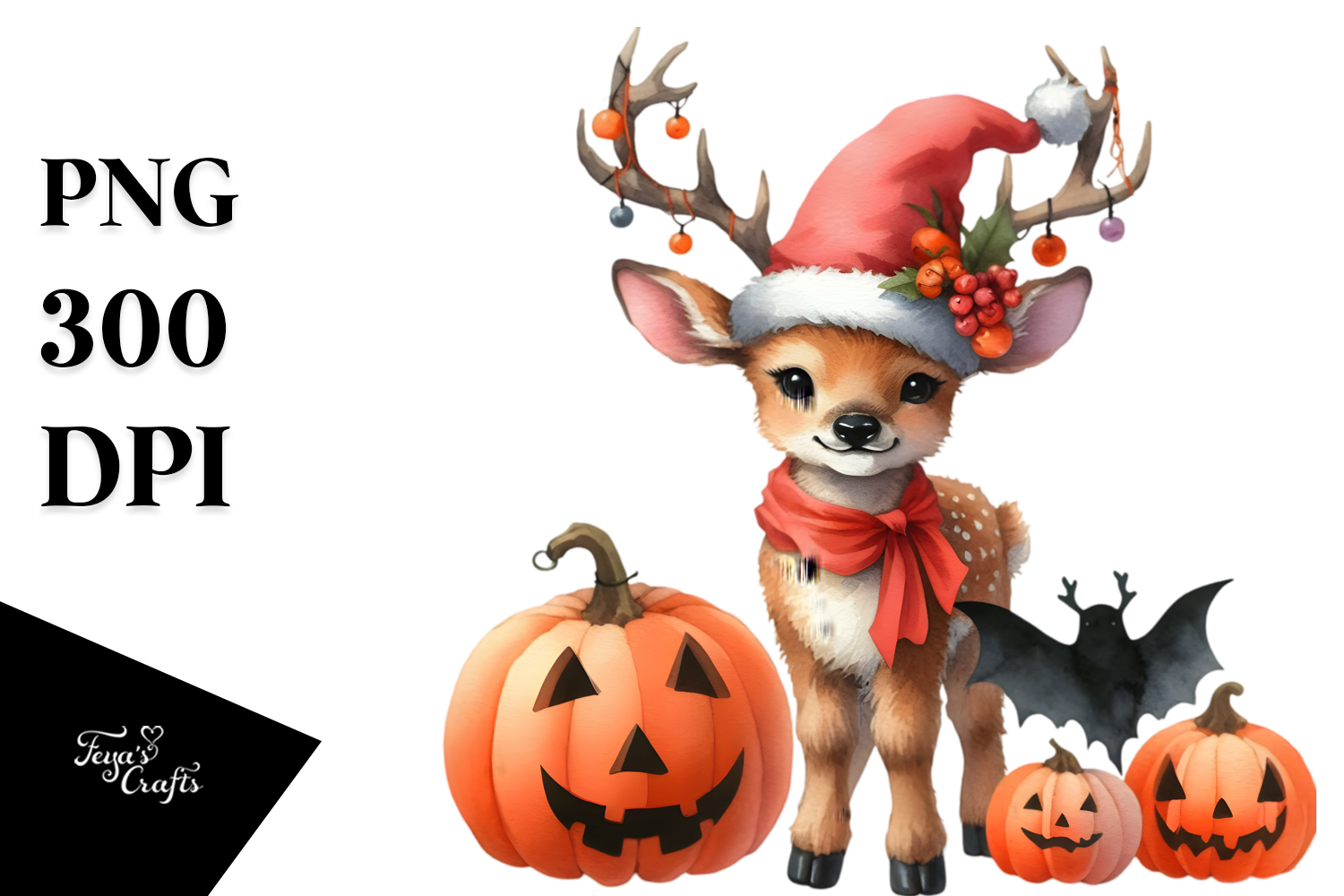Baby Elk Halloween Watercolor Clipart
