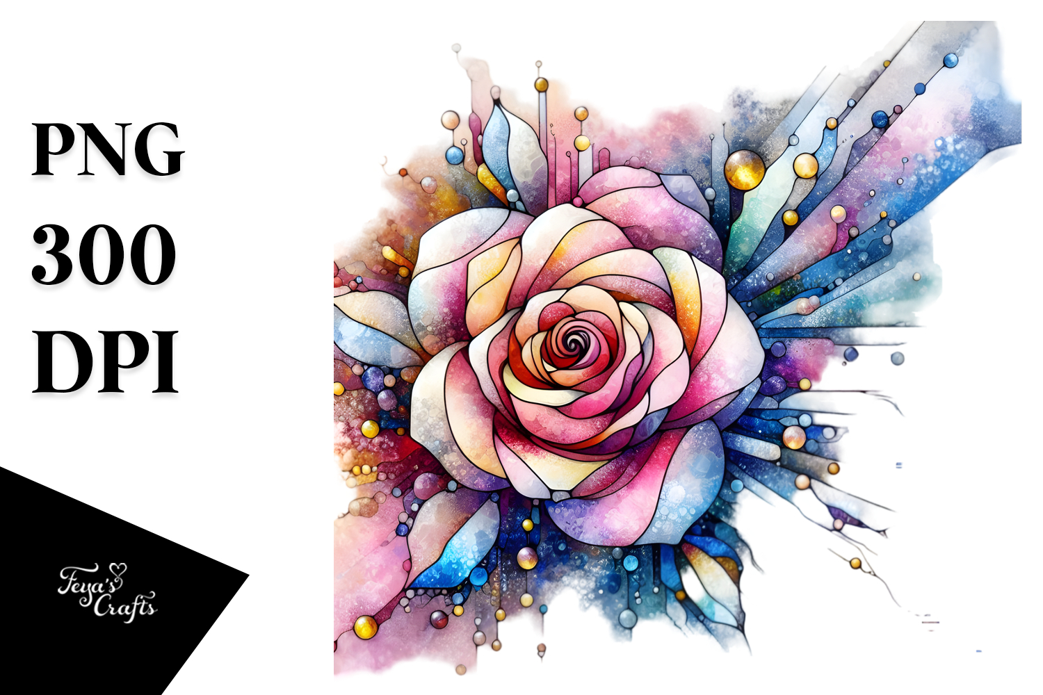 Watercolor Round Wooden Splash Rose Whitebackground Goldeninsertions Smallstainedglass