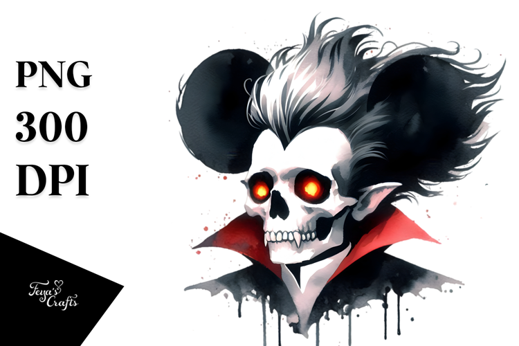 Retro Cartoon Fun Fantasy Halloween Hair Simplistic Watercolorstyle Vampireskull