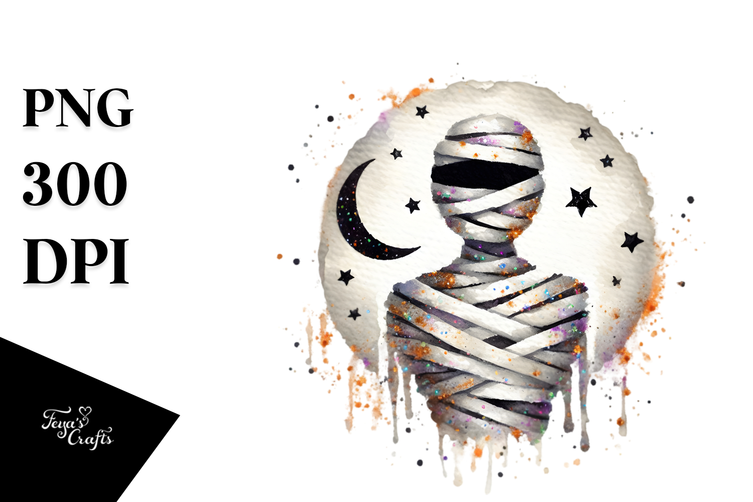 Vintage Classic Halloween Mummy Whitebackground Centered Watercolorstyle