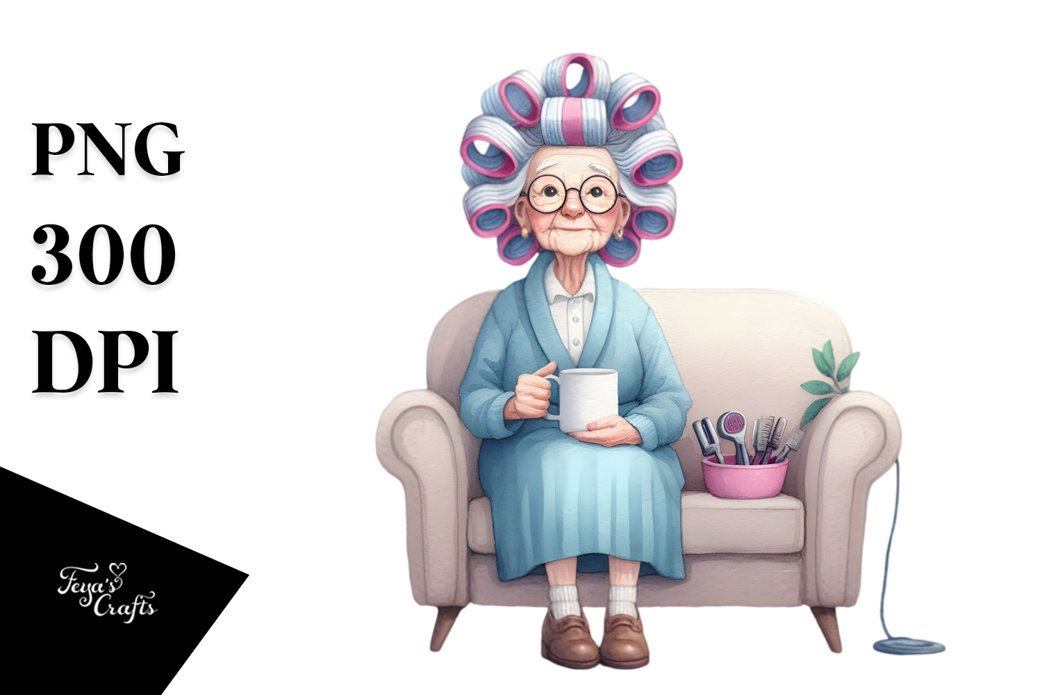 Similar Design Products to Old Lady Watercolor Character on Sofa | Sublimation Clipart