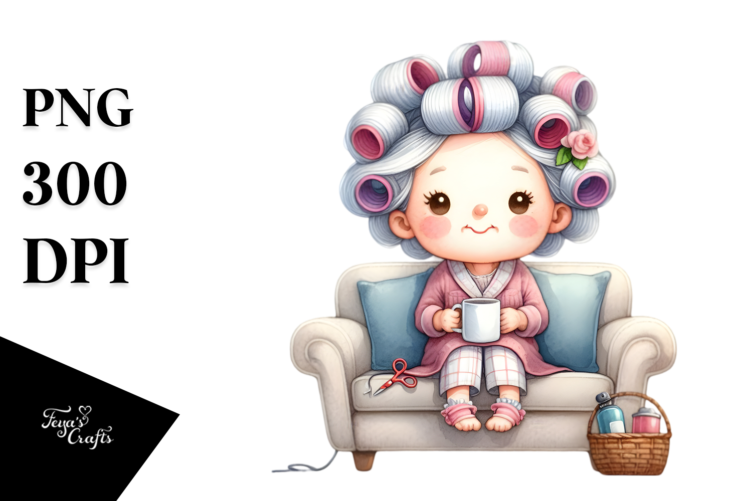Sticker Summer Flower Png Mug Sublimation Sofa Oldlady Haircurlers