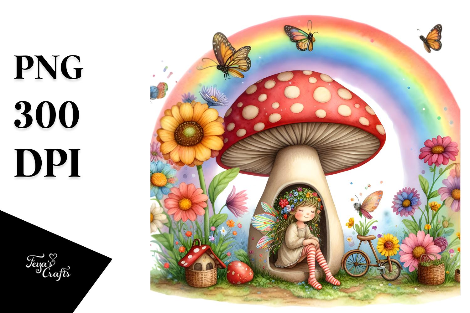 Illustration of Fairy House with Large Mushroom and Colorful example image 1